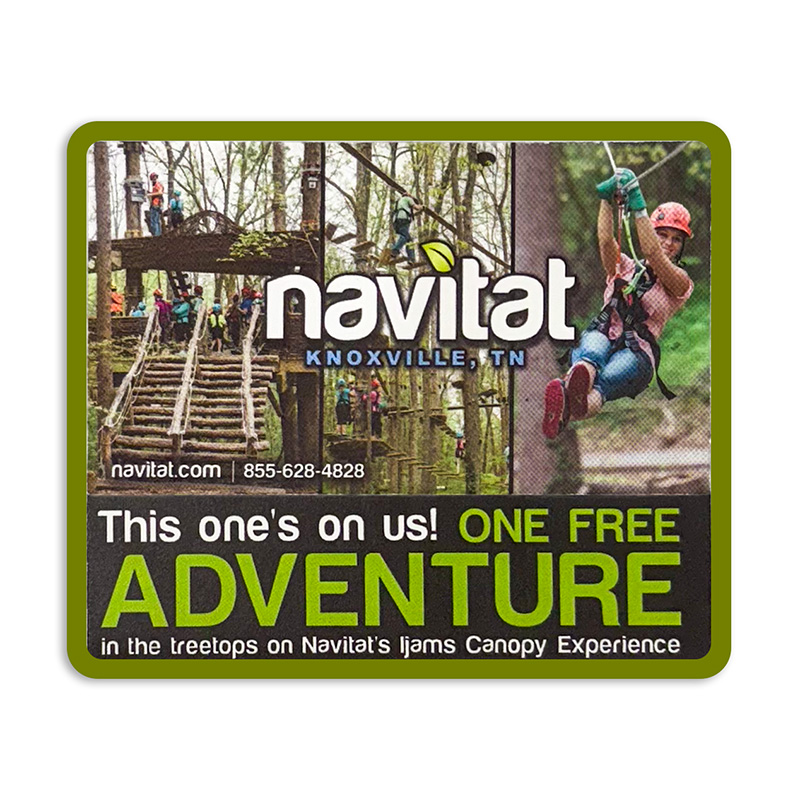 Soar through the treetops with two admissions to Navitat Knoxville on their Ijams Canopy Experience. This aerial adventure park features 6 family-friendly trails with zip lines, bridges, swings, and more, offering excitement for beginners and experienced adventurers alike. Enjoy breathtaking views, thrilling challenges, and a unique outdoor experience perfect for friends or family.
